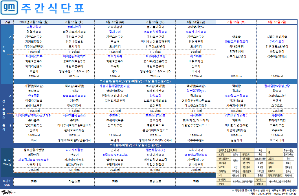 2024³â 6¿ù 3ÀÏ~6¿ù 9ÀÏ ÁÖ°£½Ä´ÜÇ¥ ÀÔ´Ï´Ù.