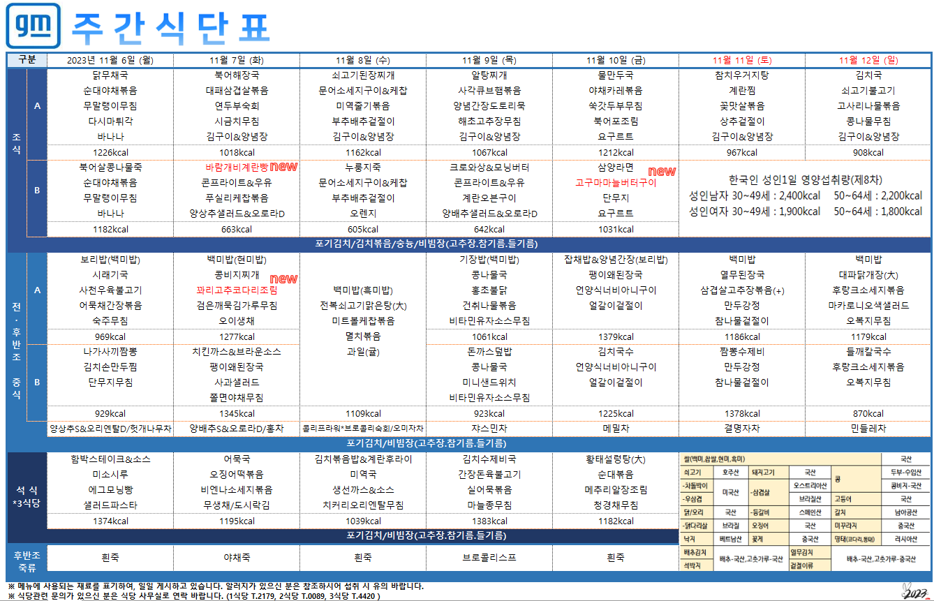 2023³â 11¿ù 06ÀÏ~11¿ù 12ÀÏ ÁÖ°£½Ä´ÜÇ¥ ÀÔ´Ï´Ù.